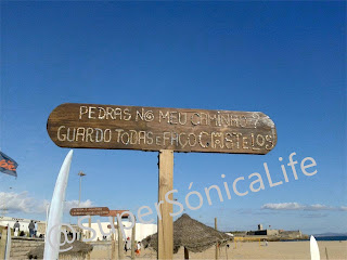 Colocaram estas placas, escritas com conchinhas, que eu adorei: